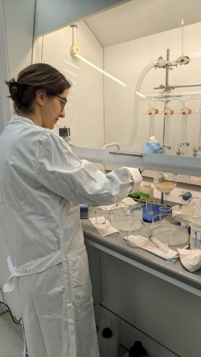 Maja is investigating wood’s AC conductivity using electrochemical impedance spectroscopy (EIS) and testing how different wood components interact with moisture and influence its electrical properties.