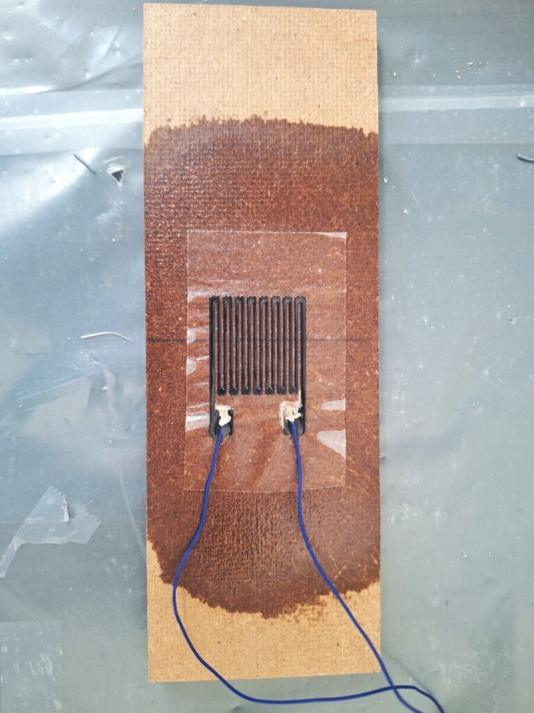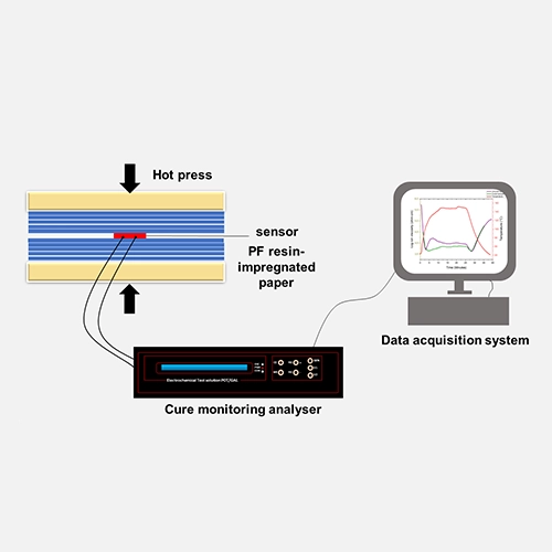 Understanding the curing behavior is pivotal for manufacturers of composite panels as it aids in determining an optimal pressing time that strikes a balance between performance and production cost. Typically, commercial sensors based on polyimide are utilised for this purpose, but they are non-biodegradable and can potentially impact the mechanical characteristics of laminates once integrated.