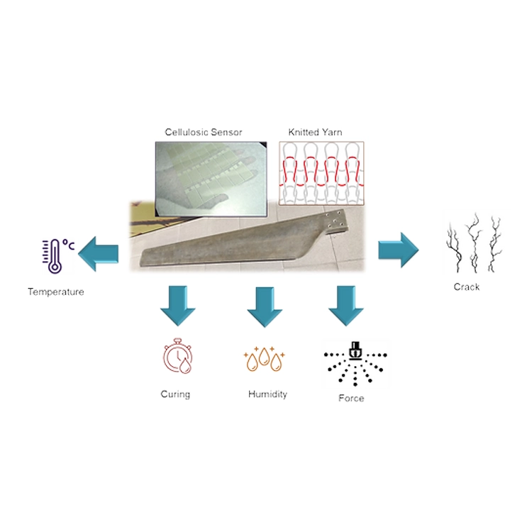 The project aims to develop sensors using renewable cellulose or fabrics, integrating them into composite structures, knitting conductive or piezoresistive yarns into textile structures for use as embedded sensors, and implementing embedded sensors to monitor cure progress, strain, crack propagation, humidity, and temperature in the composites